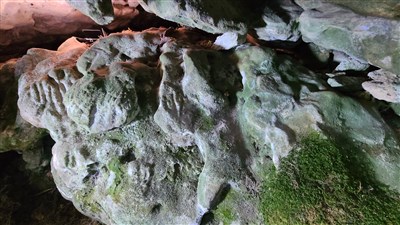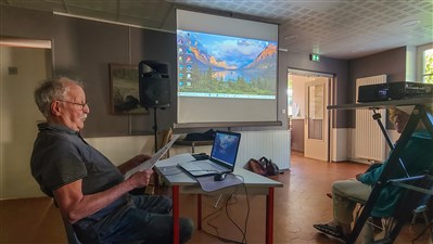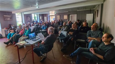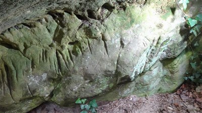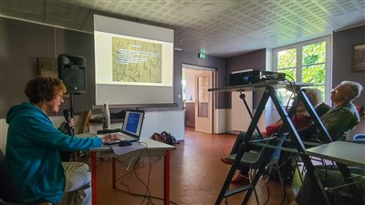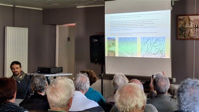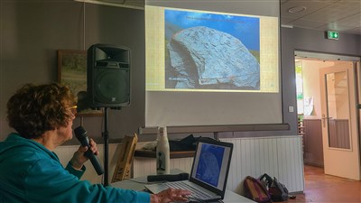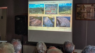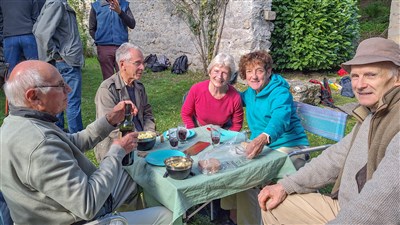 Après un repas partagé pris dans le jardin de la salle polyvalente, une quarantaine de personnes est partie pour une visite des abris ornés des secteurs dits des Marais de Touvaux et du Boisbiphard, sous la conduite de Michel Rey.